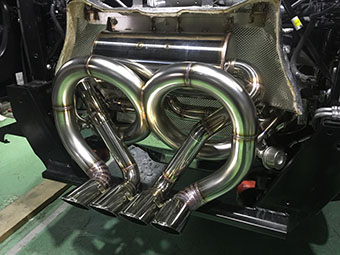 J-WOLFではオーナー様のご要望に応じて、ハイクオリティで質の高いマフラー製作を提案いたします。 スーパーカーにスポーツカー、四輪、二輪などすべてのレーシングマフラーに対応させていただきます。